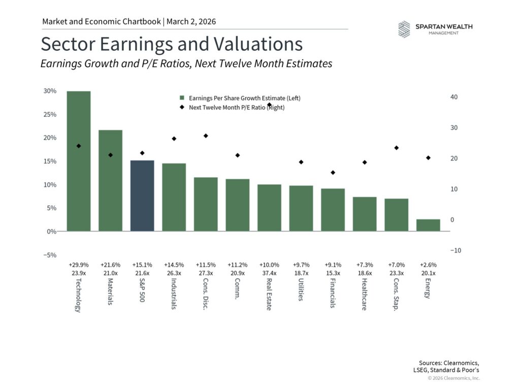 These concerns have contributed to a notable market rotation. Investors have been diversifying away from mega-cap technology stocks and toward sectors perceived as harder to displace, including energy, materials, and industrials. This shift, sometimes described as a move toward “heavy assets, low obsolescence” (HALO) companies, helps explain why the Nasdaq underperformed while other parts of the market rallied.